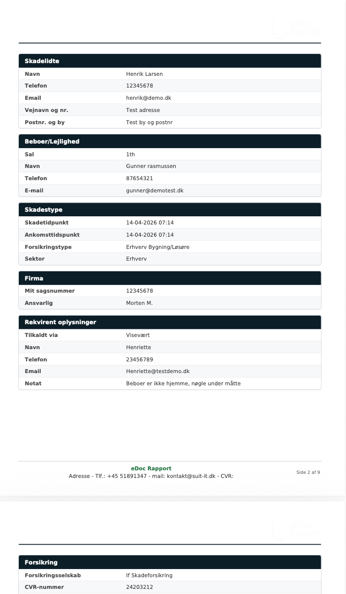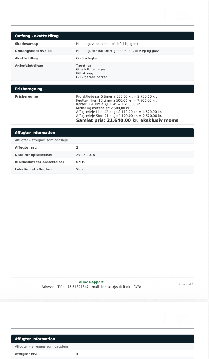 Rapporter samles automatisk i systemet og kan eksporteres som professionelle dokumenter – klar til kunde, arkiv eller videre behandling.